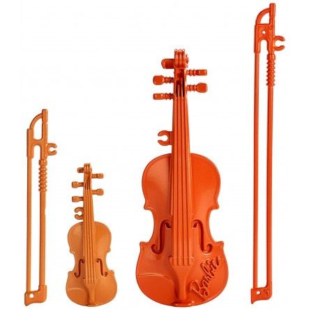 Patru instrumente permit copiilor să-și creeze propriile povești - aici sunt o trompetă, un fluier și două viori cu arcuș, una pentru păpușa Barbie® și una pentru elevul ei.