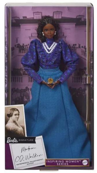 Seria Barbie Inspiring Women onorează eroinele incredibile ale timpului lor: femei curajoase care au riscat, au schimbat regulile și au deschis calea pentru generații de fete să viseze mai mult ca niciodată. Madam C. J. Walker, născută Sarah Breedlove în 1867 pe o plantație de bumbac din Delta, Louisiana, a fost fiica unor părinți care fuseseră anterior sclavi și au devenit fermieri închiriași. Walker a devenit o antreprenoare de succes și prima milionară independentă documentată din SUA. Barbie onorează hotărârea ei neclintită cu o păpușă de colecție, creată după chipul ei. Păpușa include și accesoriul „Wonderful Hair Grower al lui Madam C.J. Walker”. Păpușa Barbie Madam C.J. Walker va fi un adaos minunat pentru orice colecție. Sunt incluse un suport pentru păpușă și un Certificat de autenticitate. Păpușa nu poate sta singură în picioare.