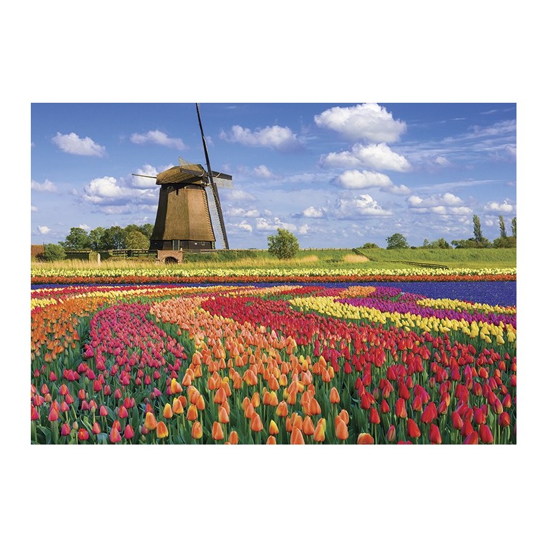 Puzzle 1000 piese - Peisaj - Câmpuri de lalele - Olanda