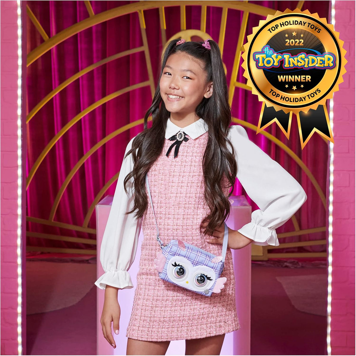 Cu Purse Pet, moda întâlnește prietenia. Ia-ți geanta superdrăguță oriunde mergi. Are dimensiunile 10,8 cm înălțime, 15,9 cm lățime și 6,4 cm adâncime. Fiecare geantă este de dimensiunea perfectă pentru a încăpea toate lucrurile necesare. Un cadou excelent pentru fetițe. Include 3 baterii Duracell AAA. Colectează toate gențile (vândute separat) și exprimă-ți stilul cu Purse Pets! Adu acasă Leoluxe Purse Pet și creează-ți un look de modă interactiv!