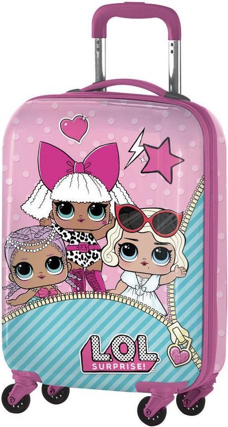 Troler LOL Surprise, Outrageous: Această valiză este ideală pentru bagajul de mână în avion. Ușor de utilizat și pentru o călătorie de weekend. Este echipată cu 4 roți pivotante, ceea ce o face ușor de împins. În interior are compartimente pentru depozitarea în siguranță a obiectelor, cum ar fi o bandă elastică și un buzunar cu fermoar. Fii bine pregătit pentru călătorie cu această valiză! Cadoul perfect pentru ziua de naștere sau sărbători.