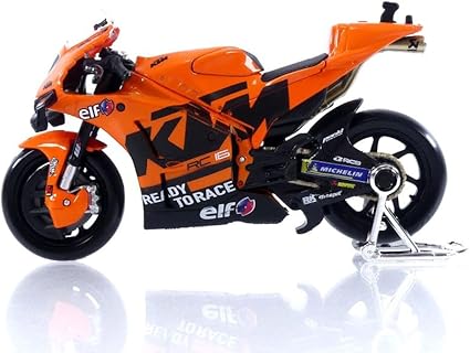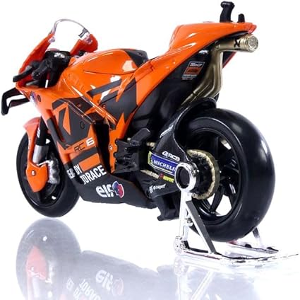 Modelul motocicletei la scară 1/18, care reprezintă Moto GP 2021 Tech3 KTM Factory. Acest model de motocicletă realizat cu precizie include toate detaliile cheie care reflectă motocicleta de curse reală, cum ar fi logo-urile, culorile și designul caracteristic acestei echipe. Este fabricat dintr-un aliaj metalic de înaltă calitate, cu detalii precise și finisaje colorate care imită motocicleta adevărată.