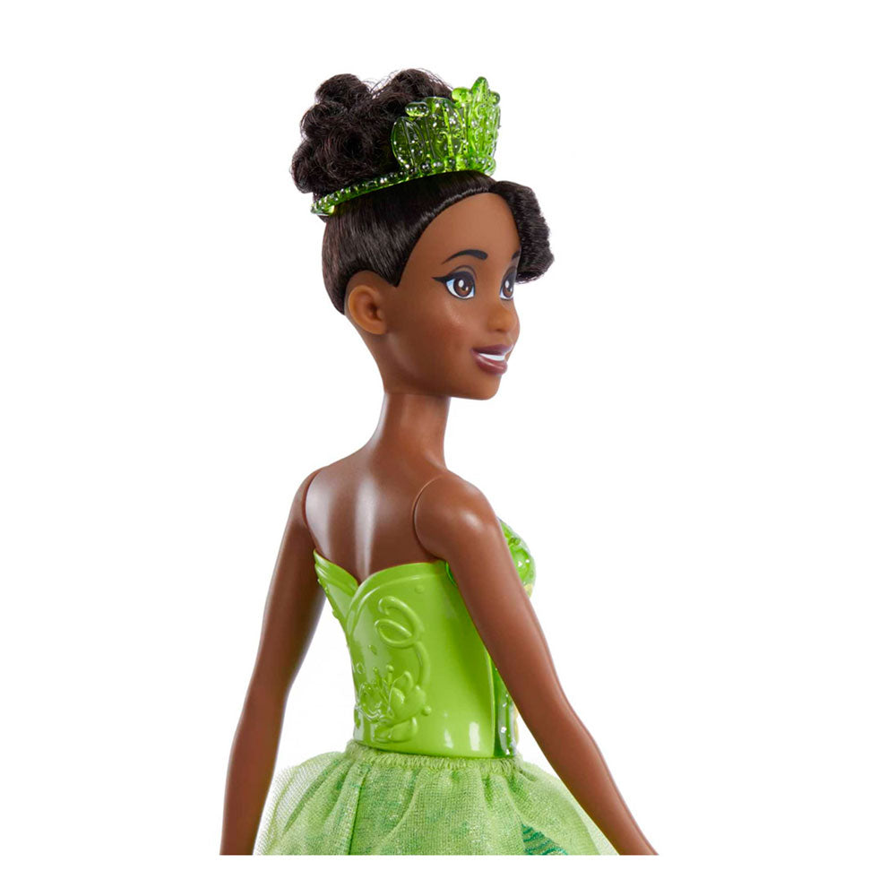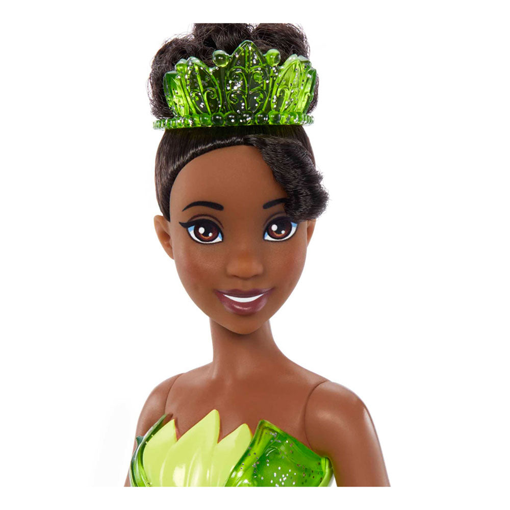 Faceți cunoștință cu această păpușă prințesa Tiana, inspirată de eroina ambițioasă și hotărâtă din filmul Disney Prințesa și broscoiul. Această păpușă de modă versatilă este îmbrăcată într-o rochie strălucitoare cu accesorii, inclusiv pantofi și tiară. În aspectul său emblematic din film, păpușa Tiana este pregătită pentru orice aventură! Păpușa nu poate sta în picioare singură. Culorile și decorațiunile pot varia.