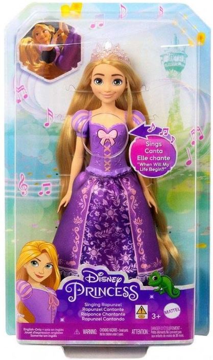 Inspirată de personajul animat din filmul Disney "Tangled", această păpușă Rapunzel plină de viață și creativitate este gata pentru aventuri! Fanii vor fi încântați când păpușa Rapunzel va cânta melodia sa emblematică în limba engleză, "When Will My Life Begin?" Îmbrăcată în rochia sa clasică mov, păpușa Rapunzel cântă la apăsarea unui buton. Copiii pot recrea momentele lor preferate din film sau pot inventa propriile povești cu Rapunzel. Păpușa nu poate sta în picioare singură.