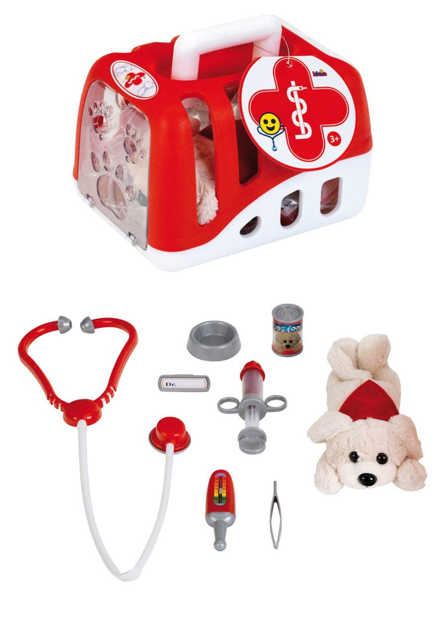 Carcasa, creată pentru copii a căror inimă bate pentru animale: Nu conține doar un minunat cățeluș de pluș care abia așteaptă să fie primit în inimile și mâinile copiilor, ci include și tot ce este necesar în cazul în care i se întâmplă ceva. Acest set veterinar practic conține, de asemenea, toate instrumentele necesare pentru examinarea amănunțită a jucăriilor de pluș și păpușilor și pentru tratarea bolilor acestora.