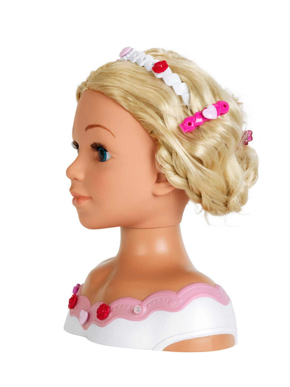 Glava pentru machiaj și coafare are părul care poate fi spălat și pieptănat. Conținutul include un set cosmetic testat dermatologic (inclusiv luciu de buze, fard de pleoape și fard de obraz), o perie în care se poate introduce o fotografie, un pieptene, o bandă de păr, un set de mărgele pentru păr, șapte agrafe de păr, două benzi pentru păr și 14 ace decorative pentru tors, o foaie cu autocolante adezive și instrucțiuni cu stiluri de îmbrăcăminte.